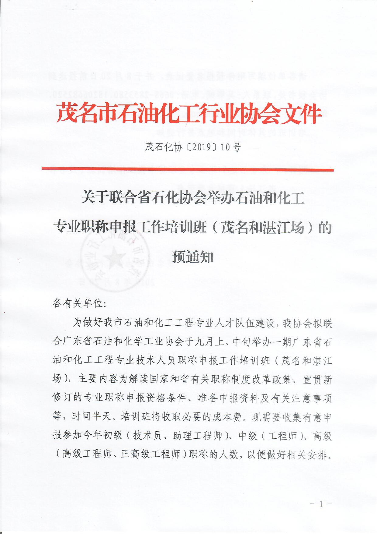 關于2018年度茂名市石油化工行業表彰推薦名單的公示